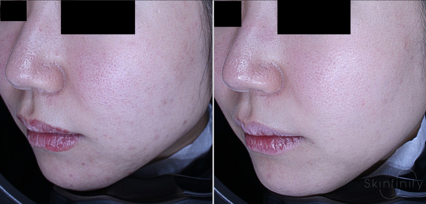 頬の毛穴が気になる方の中で、アイスピック状のするどいクレーターが紛れ込んでいるようなケースでももちろんこのピコハイVMLAフラクショナルは大変有効です。問題点は直後から顔の赤みが生じる強めのレーザー治療で、完全に引くまでは5日~7日ほど要するという部分ですが、従来のフラクショナルレーザーよりも色素沈着や赤みが長期間残存するというリスクはかなり低い安全性と高い効果が魅力です。