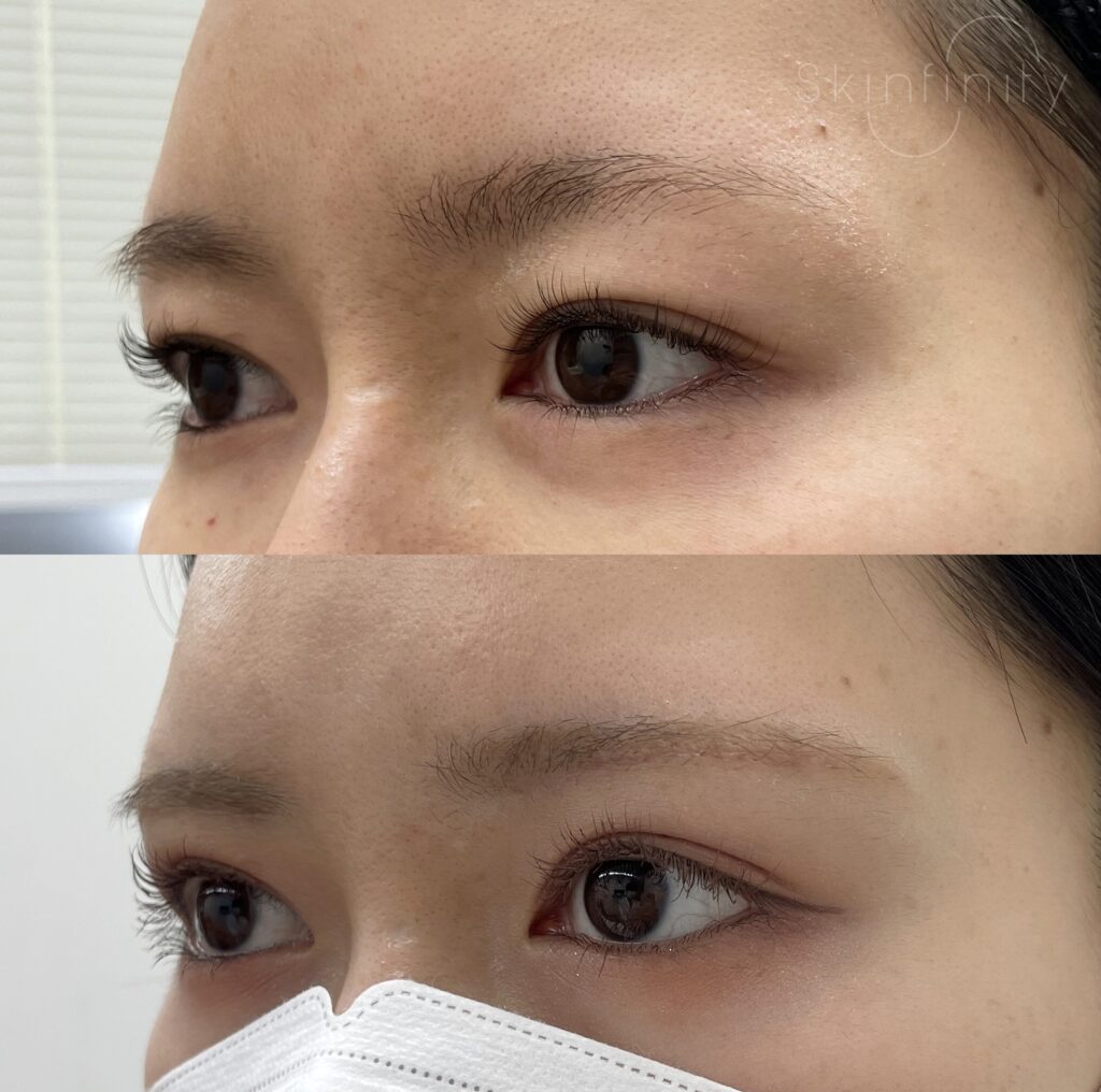あまり知られていないようですが、大部分の例では違和感なくスッキリとさせる治療が可能です。以前にも上まぶたの治療には様々なマシン系の治療があることはお伝えしましたが、手術的な治療が必要な例もございます。