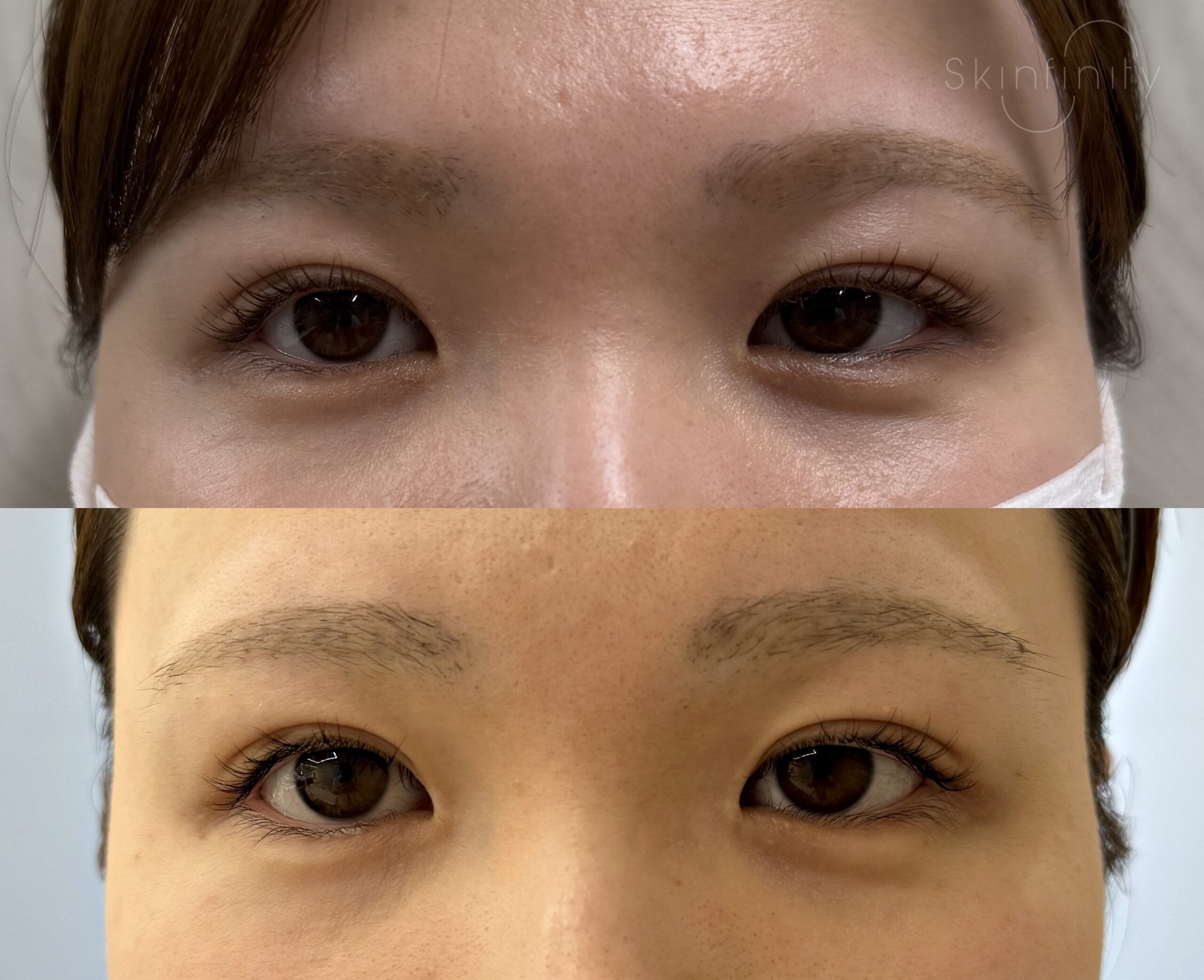 上が治療前。下が眉下切開後1か月の状態です。